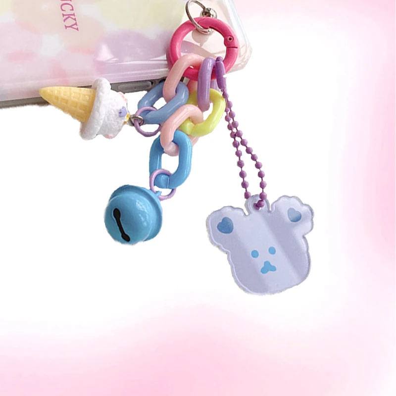 Fun Ice Cream Bear Keychain Ladies Fashion Cute Romantic Vintage Acrylic Keychain Charm Korea 90s Aesthetic Bag Phone Chain Gift