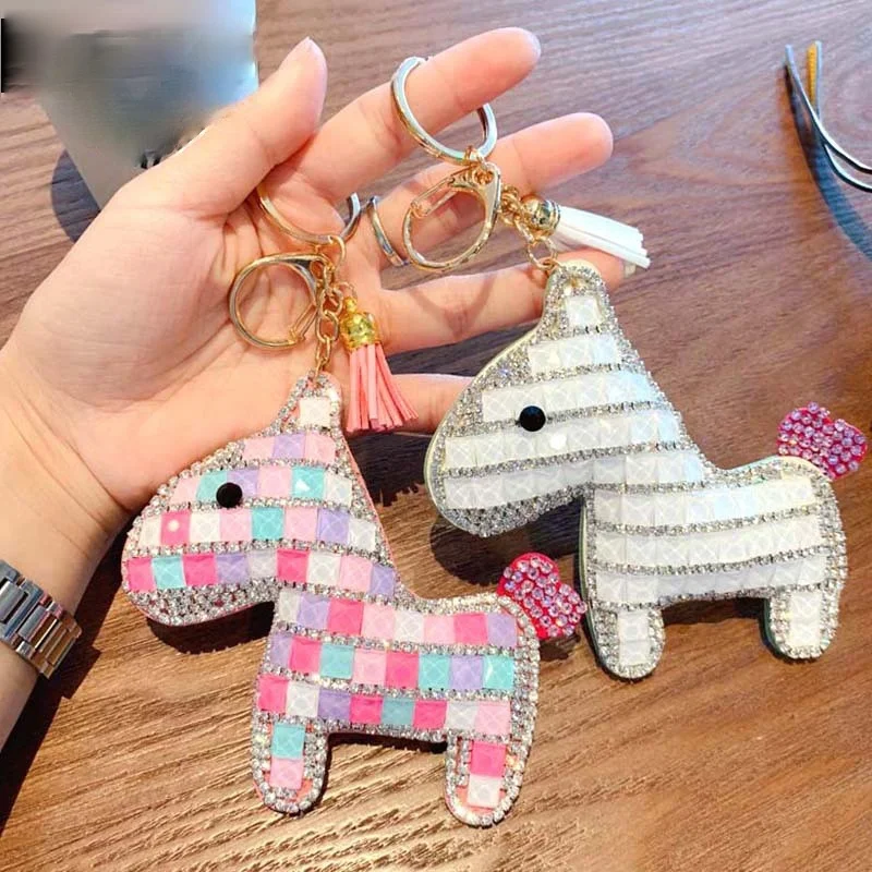 New Fashion Diamond-studded Stay Cute Horse Keychain Cartoon Personality Leather Charm Key Chain Lady Bag Mobile Phone Keychain
