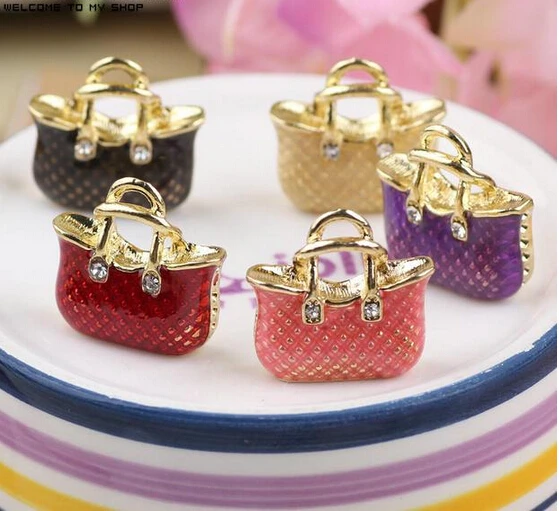 Buy Free shipping Solid Alloy drop oil gold-color metal Cartoon lady handbags shape charms diy phone/key chain jewelry pendants and You will Save