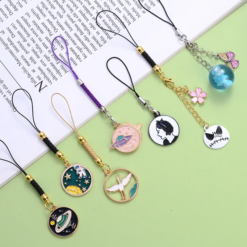 Metal Fashion Astronaut Planet Animals Mobile Phone Pendant Lanyard Anti-Lost Key Chain Ladies Gifts Decoration Accessories 1Pcs