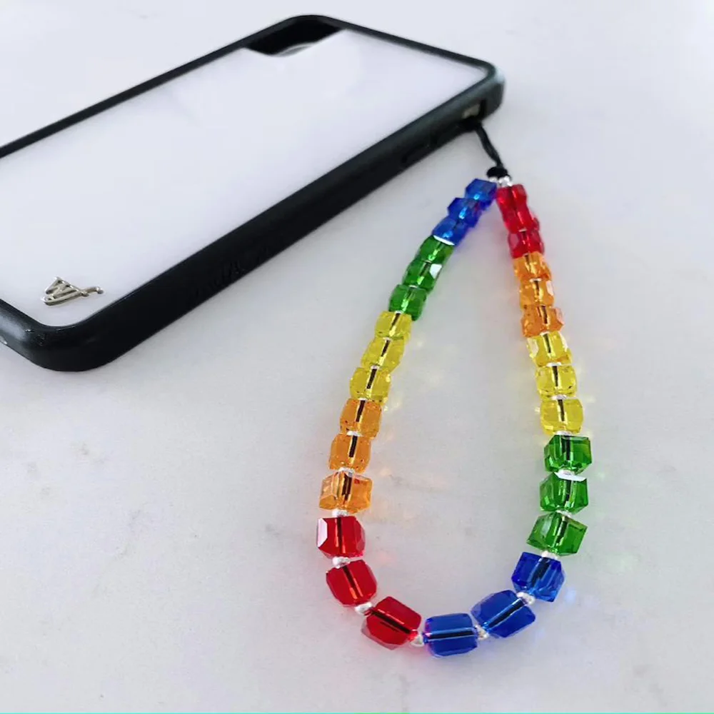 Buy Bohemian ethnic style color geometric crystal square beads mobile phone chain fashion all-match ladies jewelry and You will Save