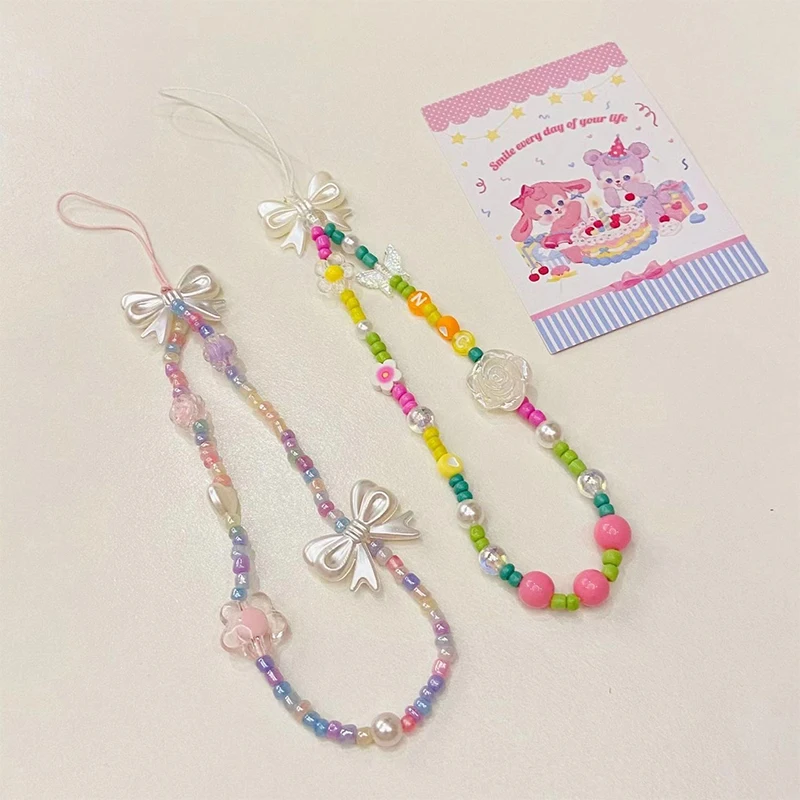 Related Product for phones for ladies and Romantic Colorful Flower Bow Tie Key Chain Ladies Fashion Cute Vintage Keychain Charm Korea 90s Aesthetic Bag Phone Chain Gifts