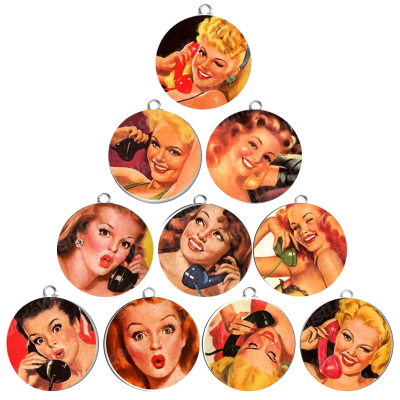 10PCS Phone Lady Charms for Jewelry Making Retro Blonde Charm Pendants For Bracelet Earring DIY Findings Jewelry