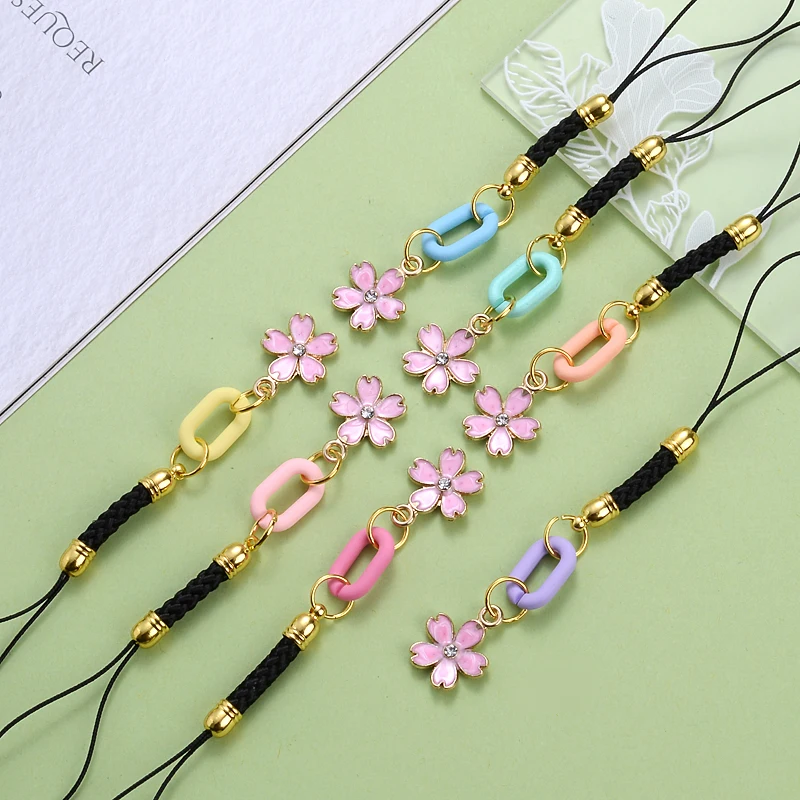 1Pcs Metal Mobile Phone Pendant Pink Flower Petals Ladie Gift Diagonal Phone Lanyard Anti-Lost Key Chain Accessories Decoration