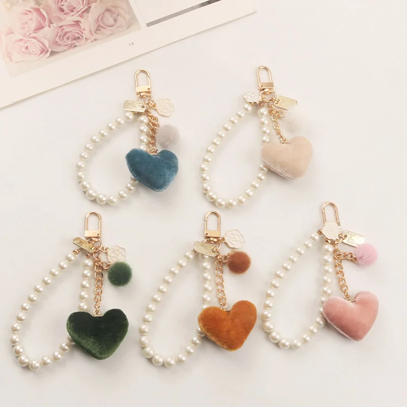 Plush Ball Key Ring Love Mobile Phone Key Chain Soft Artificial Rabbit Hair Ball Car Key Ring Ladies Bag Pendant Charm Jewelry